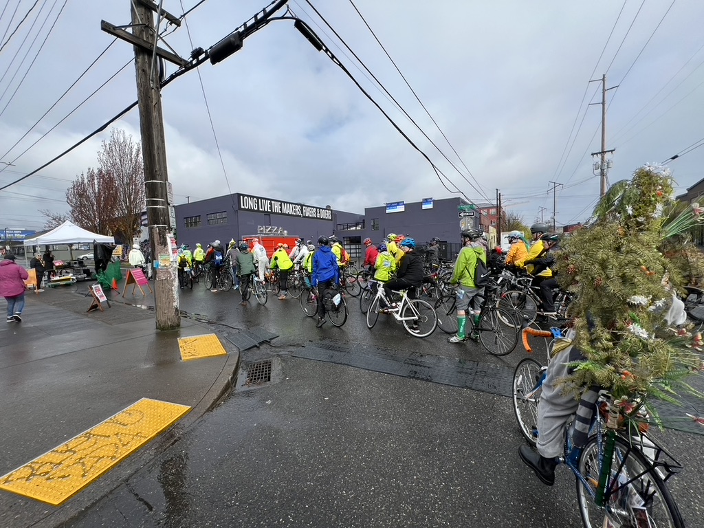 Laws and the enforcement thereof vary from place to place. In Seattle, large group rides are quite common, and in recent years are subject to almost no police interference or enforcement. In other locations, you could see anything from no interference to an almost immediate police presence and possible arrest of participants.